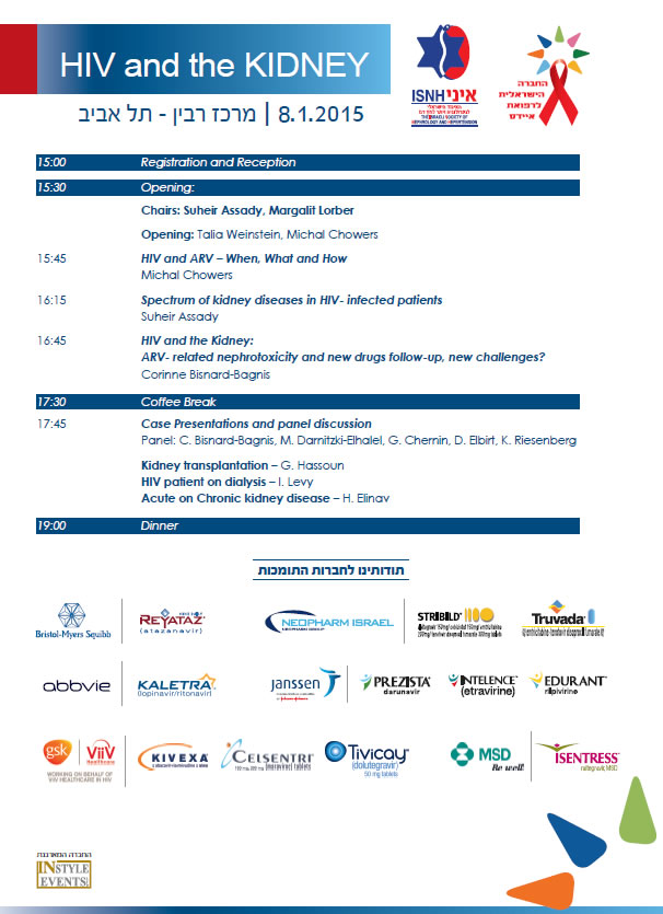 ראשי » תעוד מפגש או כנס » בתאריך 8 לינואר 2015 יתקיים כינוס בתל אביב בנושא HIV and the kidney.